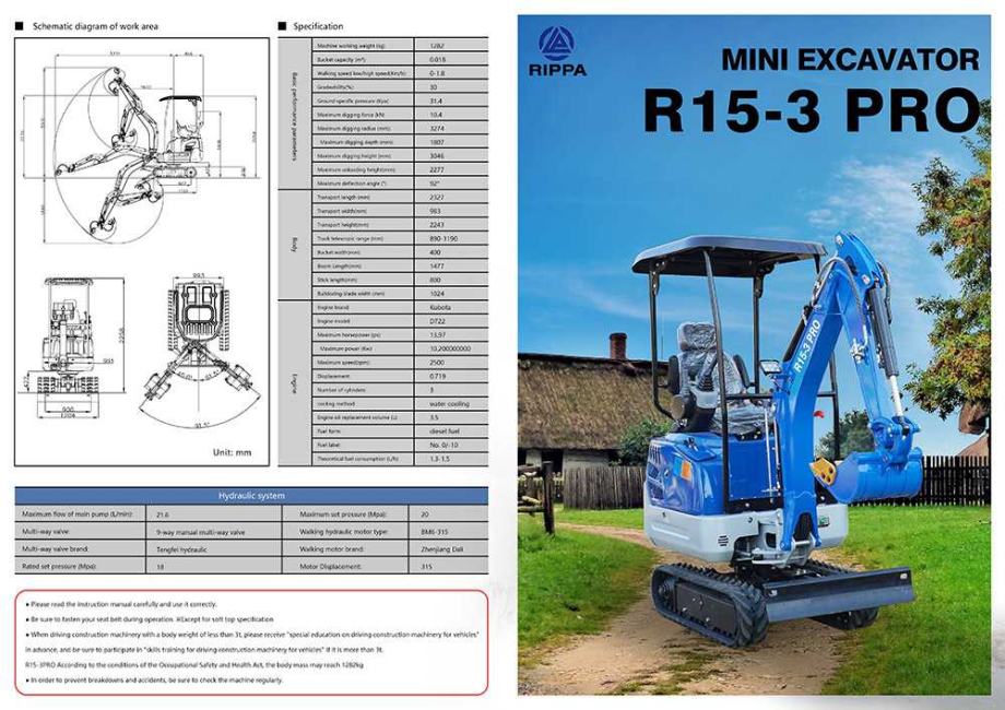 Ako tražite mini bager koji je istovremeno ekonomičan i praktičan, onda je rippa 15 svakako vrijedan razmatranja. Dizajniran za učinkovitu gradnju i uštedu troškova, ovaj mini bager idealan je izbor za niz malih projekata.
