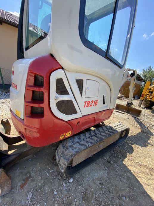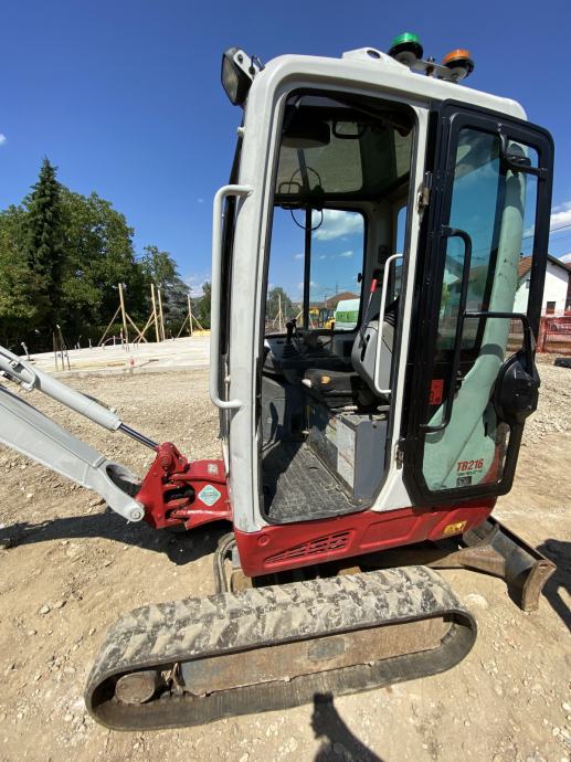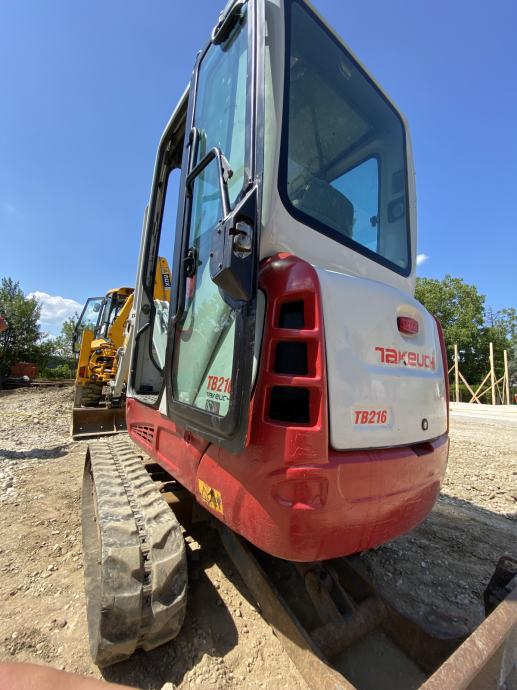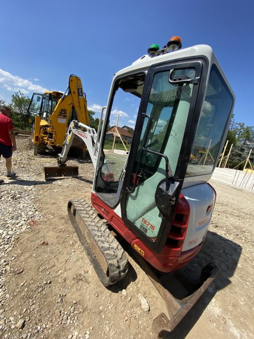 Mini bager Takeuchi TB216,godina proizvodnje je 2018. Težina bagera je 1865 kilograma. Model sa potpuno zatvorenom kabinom i vratima.