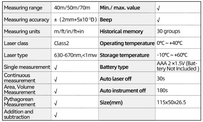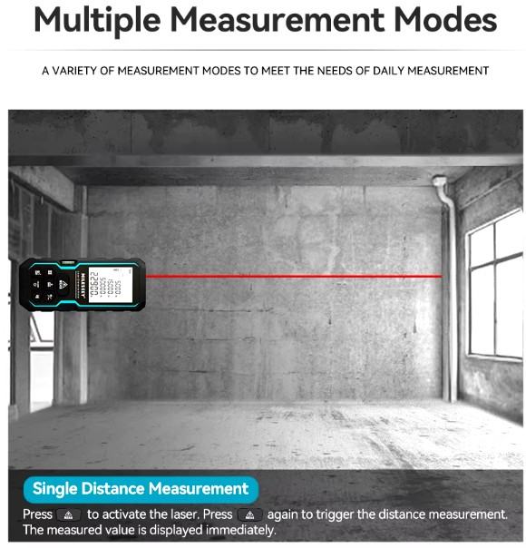 Uz lasersku preciznu tehnologiju, točnost do ±2 mm, mjerna udaljenost se proteže do 40 m