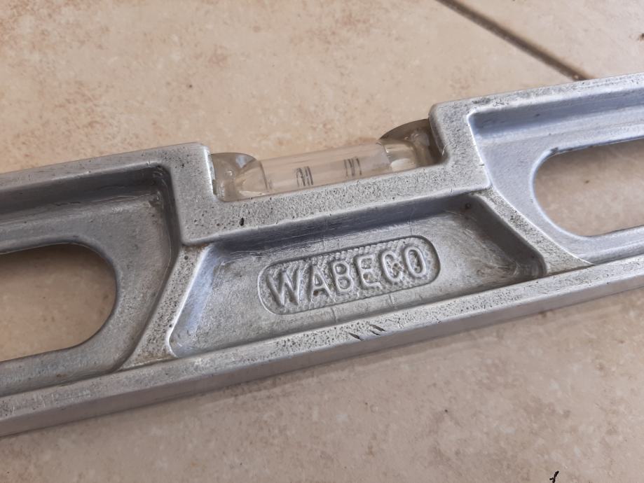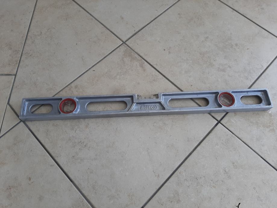 Profesionalna gradjevinska libela Njemačka, WABECO, jako davno donesena iz Njemačke, u cijelosti je puni aluminijski profil. Izuzetno je kvalitetna i čvrsta. Dužina 60 cm. Odlična za rukovanje zbog otvora za hvatanje rukom. Ima vodoravnu, vertikalnu i mjeru ugla pod 45 stepeni. Cijena 20 eura. Mob 095 350 0722
