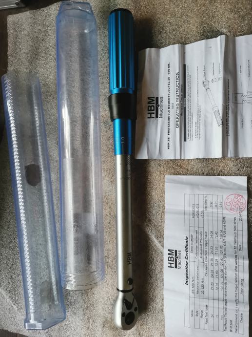 Prodajem moment ključ HBM sa CERTIFIKATOM ispravnosti i ispitivanja, novi zapakirani, nekorišteni, plačen 80 Eura prodajem za 60 eura. Mjerno područje je od 20 NM-120NM.
