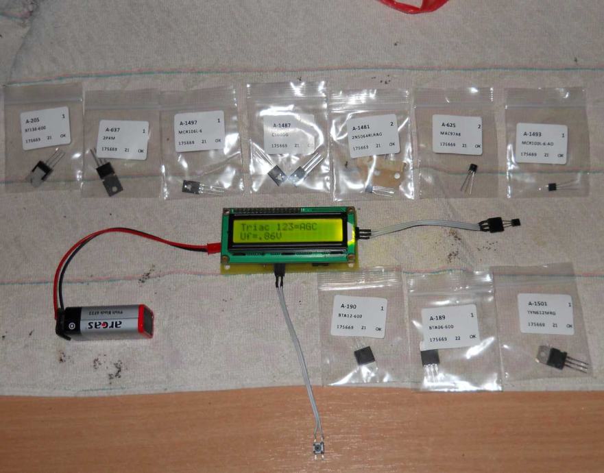 Ovaj uređaj testira gotovo sve elektroničke dijelove: sve vrste tranzistora, tiristore, trijake, diode, led diode, otpornike, kondenzatore....