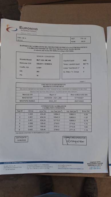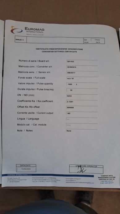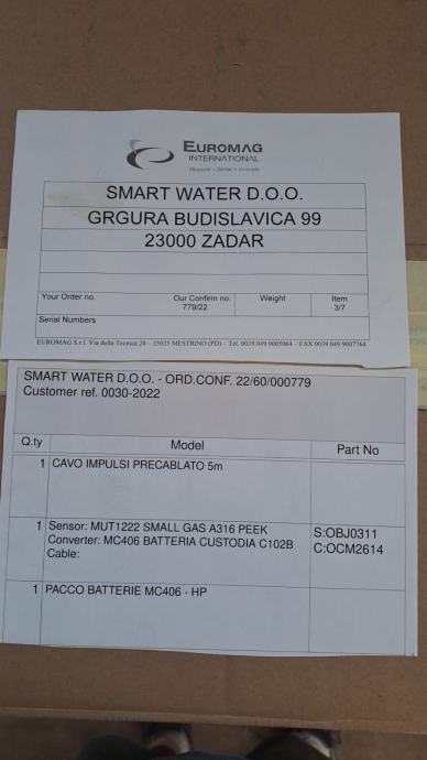 Kontrolno brojilo protoka vode sa svom dokumentacijom.