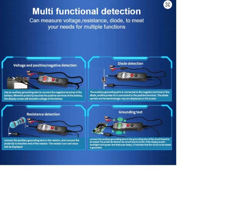 Equipped with reverse connection and overload protection, the tool probe can be used to test circuit conductivity and detect circuit voltage, with positive and negative detection.