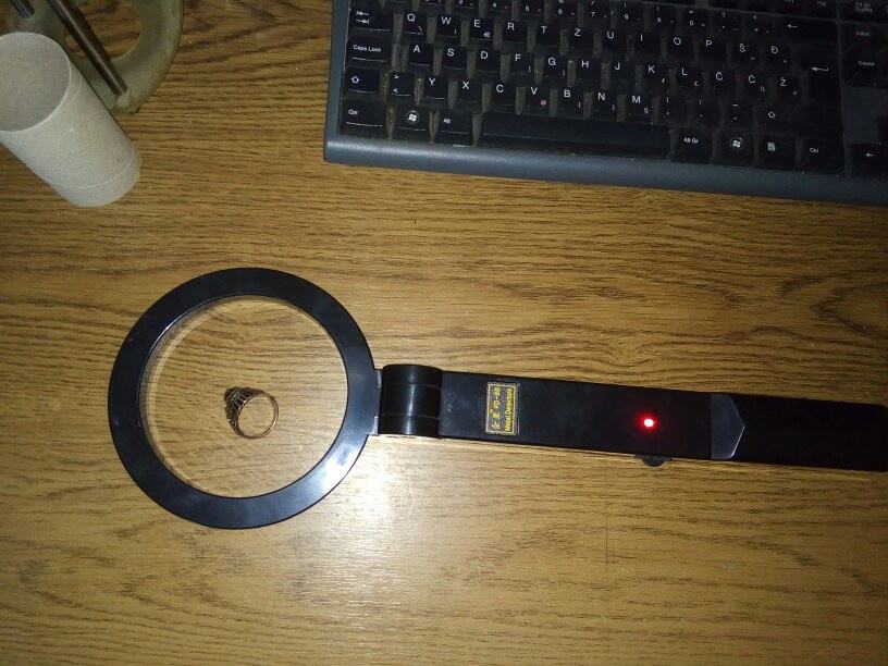 Detektor za metal na baterije sa zvučnim signalom.Osjetljivost na 12 cm..
