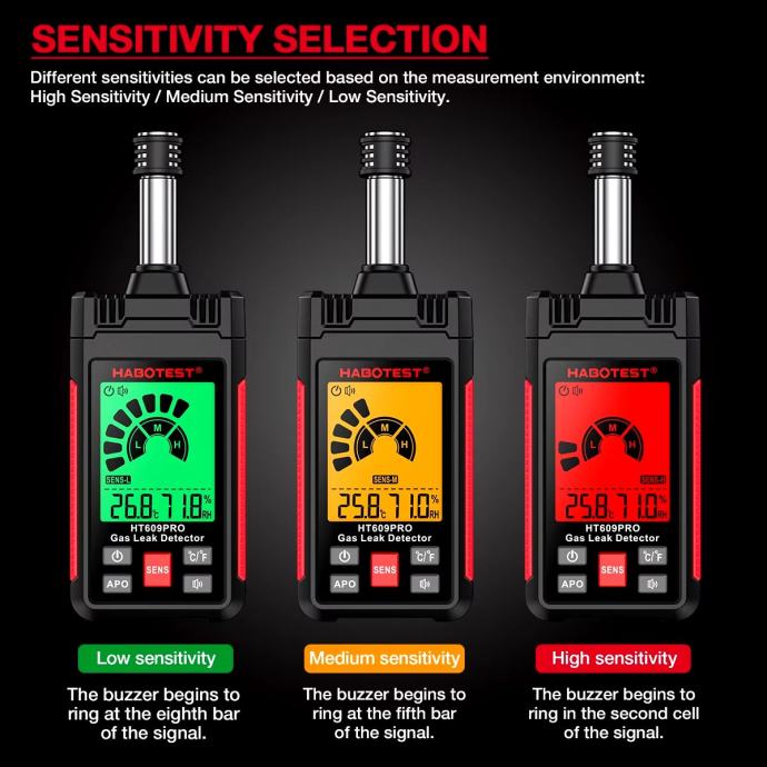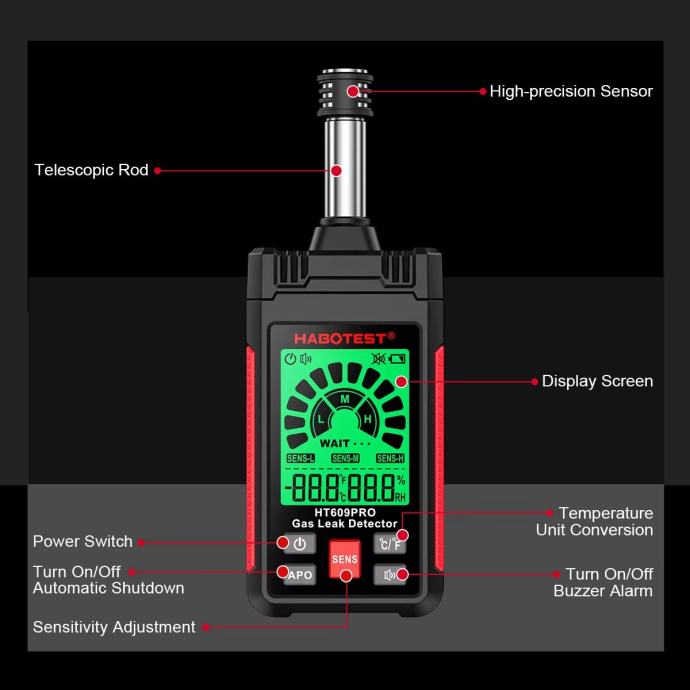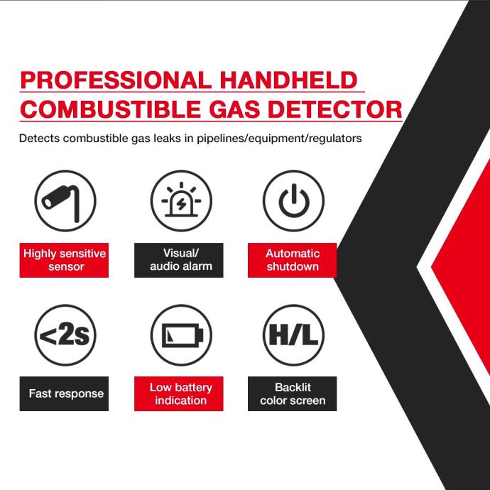 - detektira: propan, butan, metan, acetilen, benzen, etanol, hidrogen, amonijak, prirodni plin, itd.