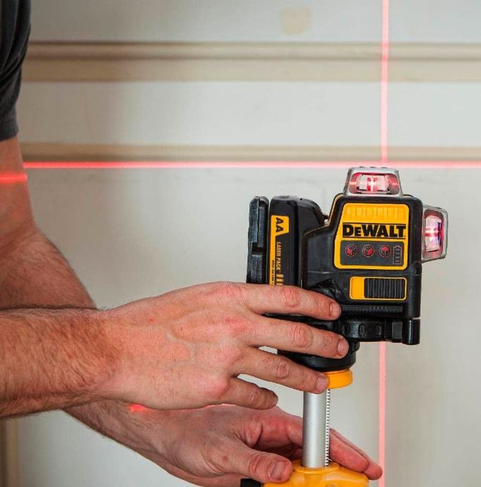 Samonivelirajući linijski laser 3x360 °, projicira 1x horizontalnu liniju i 2x vertikalne linije Manuelni način rada od 4 ° (treperi), Modus stalnog impulsa omogućuje rad s jednim prijemnikom. Isporuka u plastičnom koferu