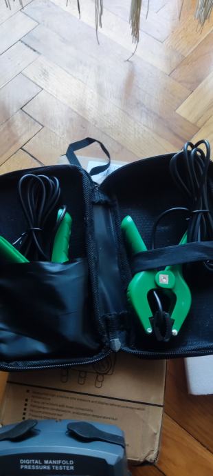 dobijete set od dva manometra visoki i niski tlak, dvije štipaljke sa sondama za kontrolu temperature usisa i tlaka.