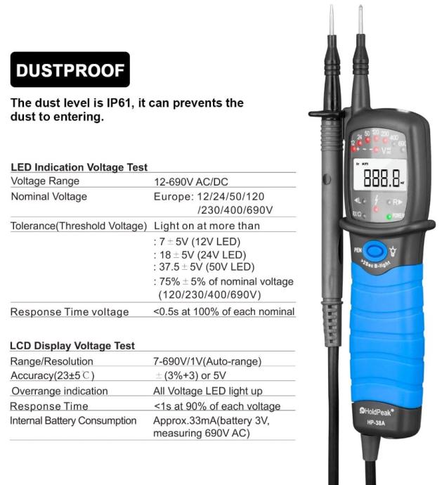 Digitalni Pen Multimetar HP-38a 12mmLCD+LED AC DC Tester Portable