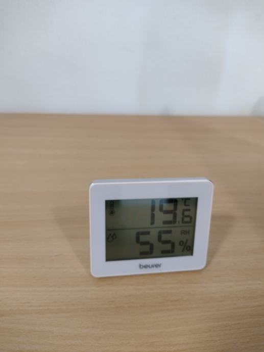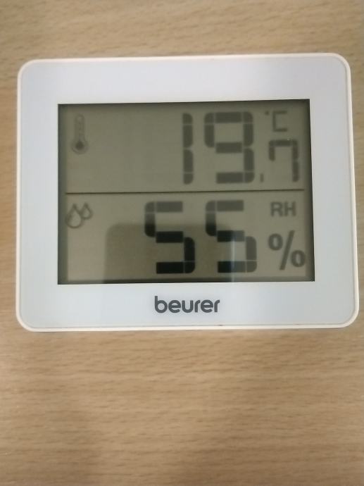 Pokazivač unutarnje temperature i vlage. Zaslon s velikim brojkama te simbol koji pokazuje kvalitetni ili lošiji postotak vlage u prostorima.