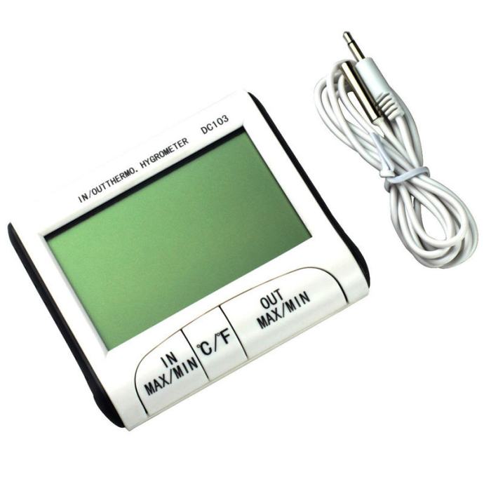 Digitalni termometar i higrometar sa dodatnom vanjskom sondom koja mjeri temperaturu.