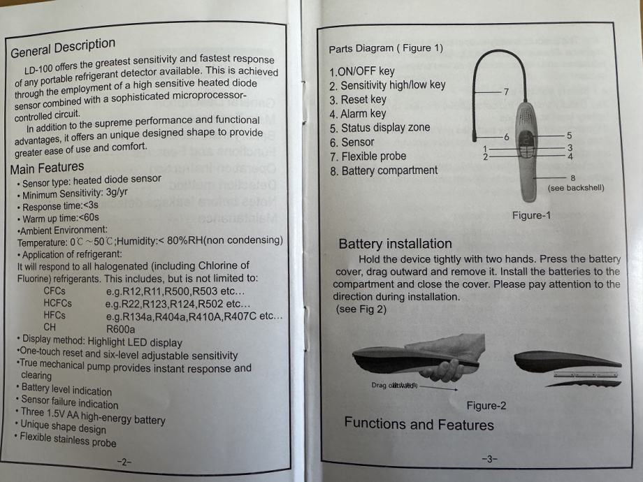 Elitech LD-100 detektor propuštanja rashladnog sredstva NOVO NEKORIŠTENO, s grijanom diodom nudi najveću osjetljivost i