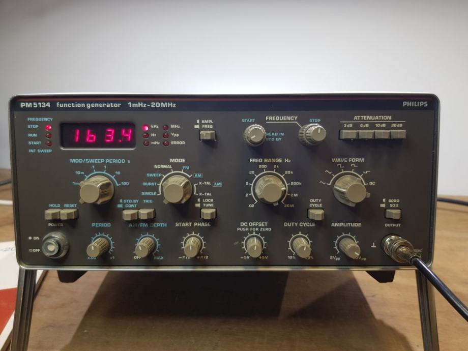 Prodajem jednokanalni funkcijski generator. Napravljen je kao zajednicki projekt Fluka i Philipsa. Ima frekvencijski opseg od mHz do 20MHz. Ima mogucnost AM, FM modulacija, sweep, burst. Izlazni signal ide do 20Vpp.Prikaz frekvencije i amplitude signala na 7 segmentnom displeju. Uz uredaj dajem upute sa svim shemama i plocicama ucrtanim. Prednost u odnosu na novije uredaje sto se sve komponente mogu lagano nabaviti i uredaj se lako servisira ako se osteti. Ostale specifikacije mozete provjeriti na internetu. Ako vas zanimaju dodatne informacije javite mi se na mail ili mobitel.