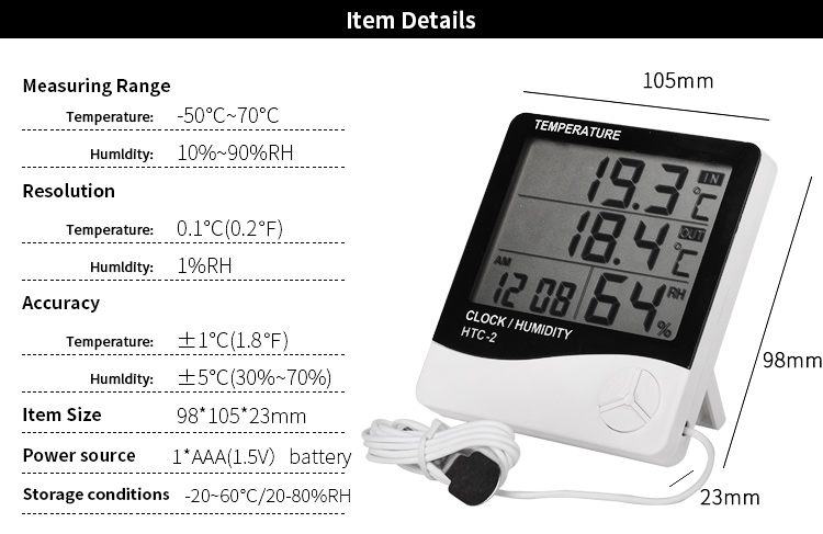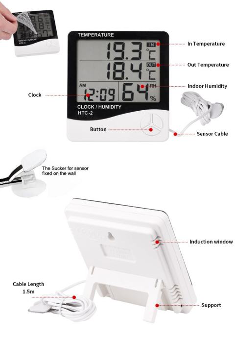 HTC-2 kucni/sobni, digitalni termometar, higrometar, sat, NOVO!!!