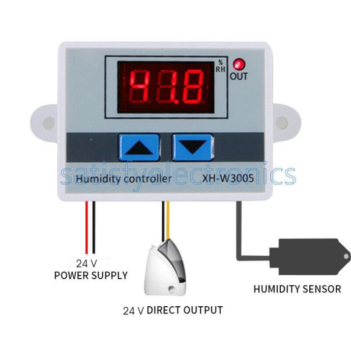 Prema izmjerenoj vlažnosti uključuje-isključuje ovlaživač ili isušivač do 240W ili veće snage uz dodatni sklopnik.