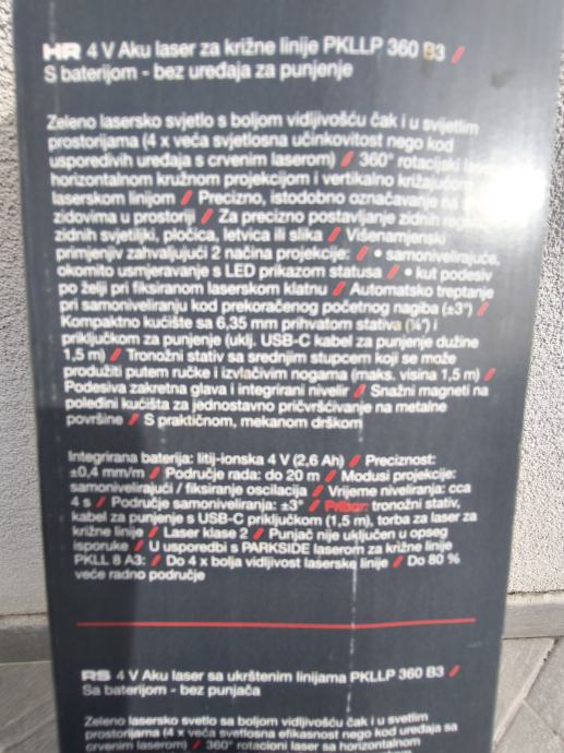Prodajem novi, nekorišteni crni aku laser Parkside performance s original računom iz Lidla i 5g garancije do 10/2030.