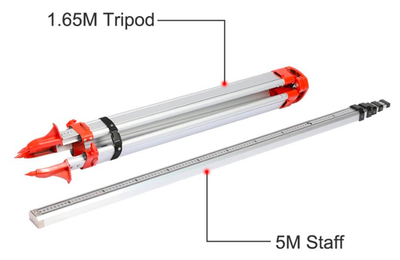 Isporučuje se sa stativa za postolje za ugradnju lasera i pripadajućim postoljem za prijemnik - Teleskopska aluminijska šipka.
