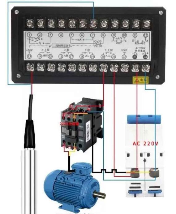 Regulator moze ukljucivati pumpu prema max ili min nivou. Za kontroler je potreban osjetnik nivoa sa izlazom od 4-20 mA.