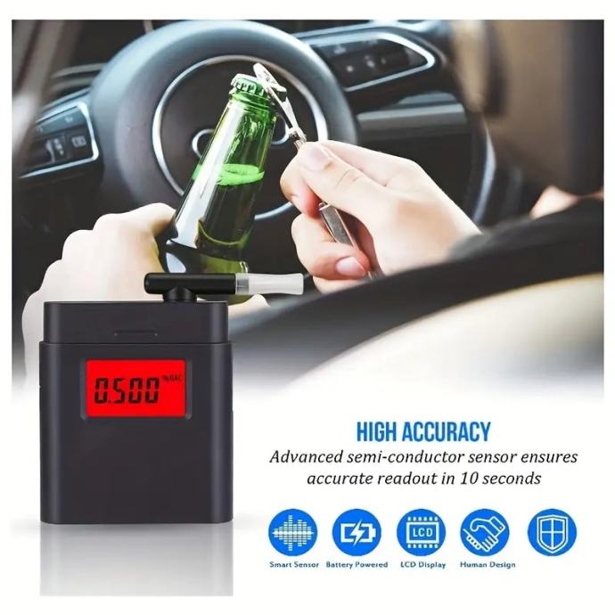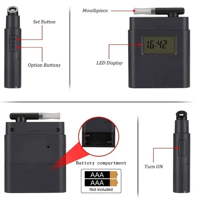 LED Alkotest za brzi alko test sa poklopcem i upuhnikom za lakšu i bolju točnost mjerenja