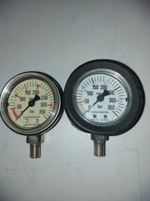 Manometri od inoxa fi 50 mm. Lijevi na slici ima floroscentnu skalu. Jedan komad 8€. x