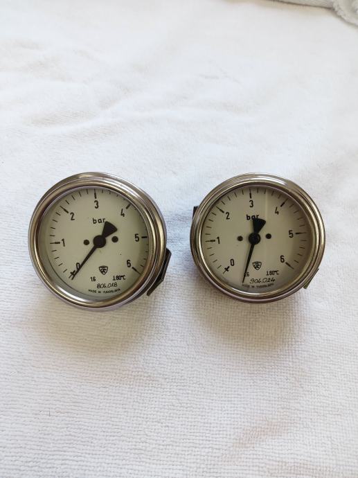 Manometri do 6 bara, termo plin gas sa nosačima, proizvođač Rudi Čajevac, nove i nekorištene prodajem. Neko vrijeme su proveli u skladištu. Imam 2 komada i cijena po komadu je 8 €