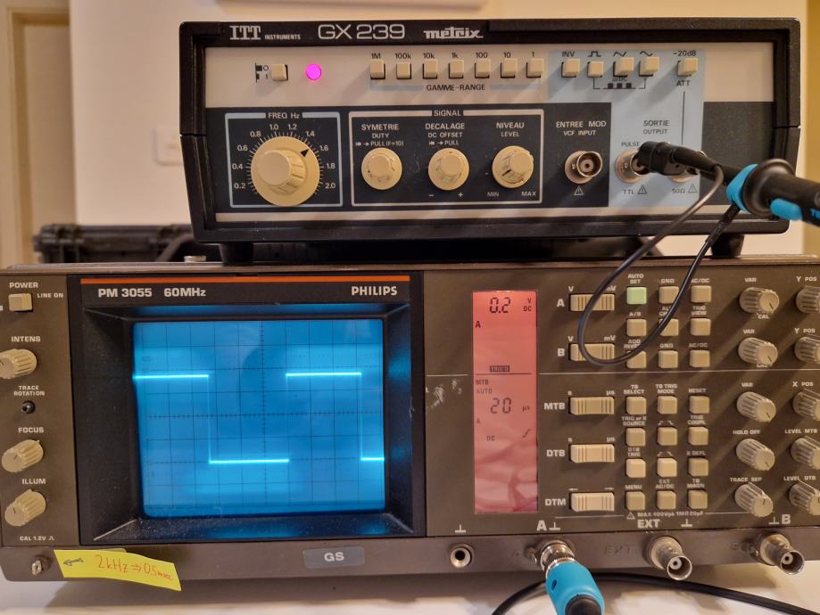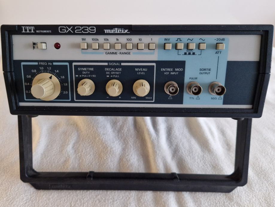 Stanje rabljeno. Sve radi osim što množitelj signala (veliki potenciometar) ne reagira ispod 1.2 Hz. Ide do 2MHz. Vrste signala vidljive na fotografijama. Na zadnjoj strani kućišta odlomljen vrh jedne od ove 4 nožice.
