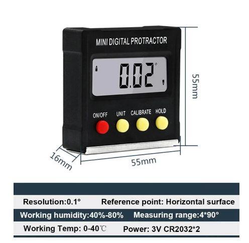 Mini Digitalni Protractor LCD 0.1° kutomjer, mjerač nagiba, nivelir -180°do+180°, 55x55x16mm