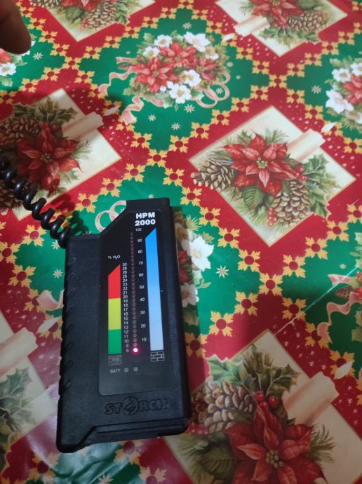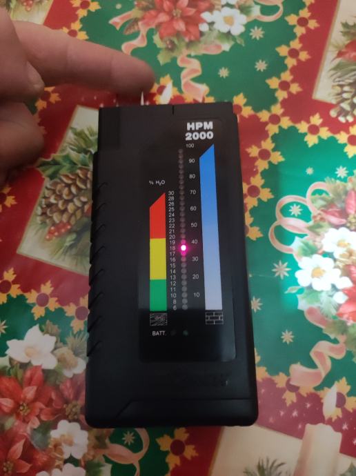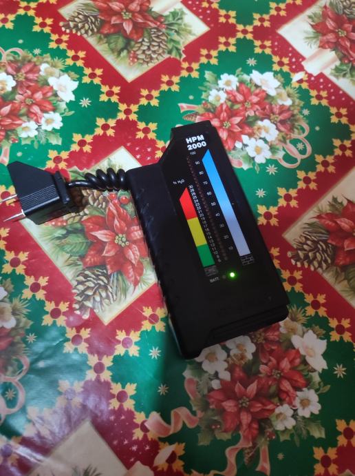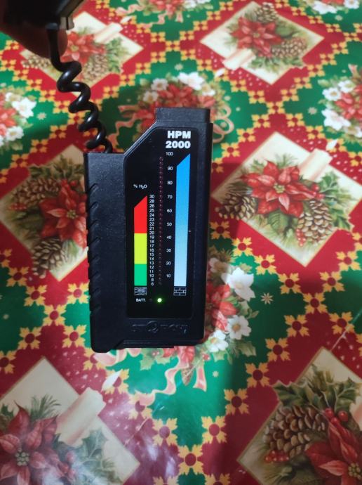 Profesionalni mjerač vlage Storch HPM 2000. Jasno čitljiva osvjetljena skala koja prikazuje postotke vlage (% H₂O).