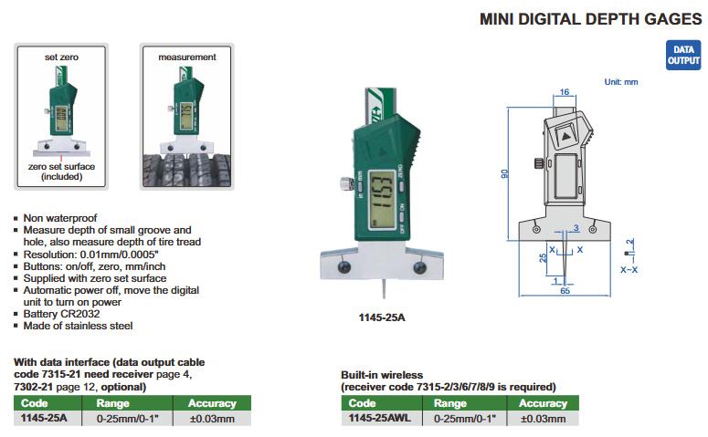Mjerilo za dubinu - digitalno, 0-25 mm, 0,01 mm, Insize