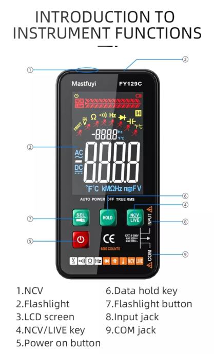 Multimetar, potpuno digitalni, automatsko prepoznavanje AC/DC napona, mjerenje temperature, bežična detekcija napona itd...