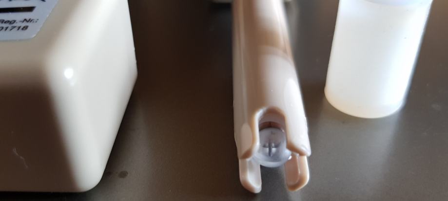 - odvojiti zaštitni poklopac s donje strane uređaja i izvuči mjerni štap s pH elektrodom ( 1 - 8 cm)