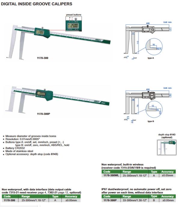 Pomično mjerilo za mjerenje unutarnjih utora, 25-300 mm, digitalno, Insize