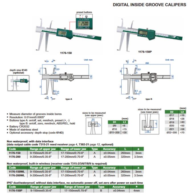Pomično mjerilo za mjerenje unutarnjih utora, 9-200 mm, digitalno, Insize