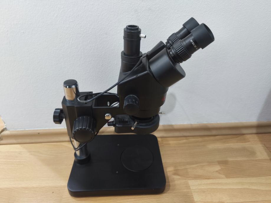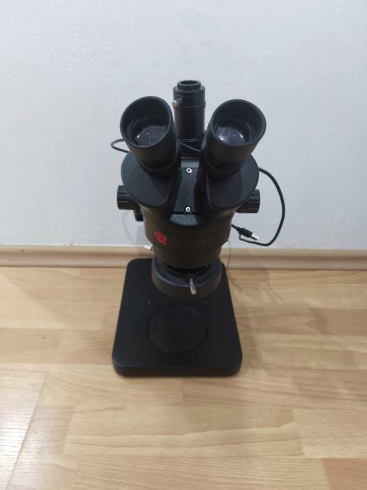 Prodaje se profesionalni trinokularni stereo mikroskop s kontinuiranim zoomom 7X–45X, idealan za servise mobitela, elektroniku, SMT/SMD radove, precizne popravke i inspekciju PCB-a.