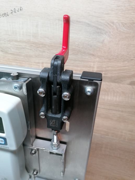 Uređaj je postavljen na postolje na vodilice na kojima je moguče pomicati prema gore ili dolje