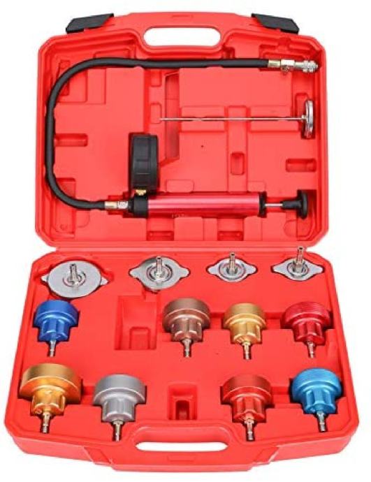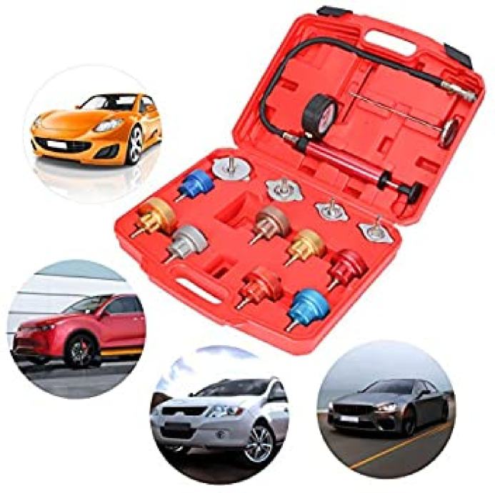 MULTIFUNKCIJA: Komplet za ispitivanje tlaka hladnjaka od 14 kom omogućuje otkrivanje curenja u sustavu hladnjaka, posebno otkrivanje kvara na brtvi glave, i pomaže vam u učinkovitijoj promjeni rashladne tekućine.
