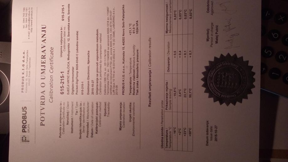- DIGITALNI TERMOMETAR ZA HRANU - tip Pocket-DigitTemp 5020-0345 C (ubodna sonda), proizvođač Dostmann Electonic Njemačka