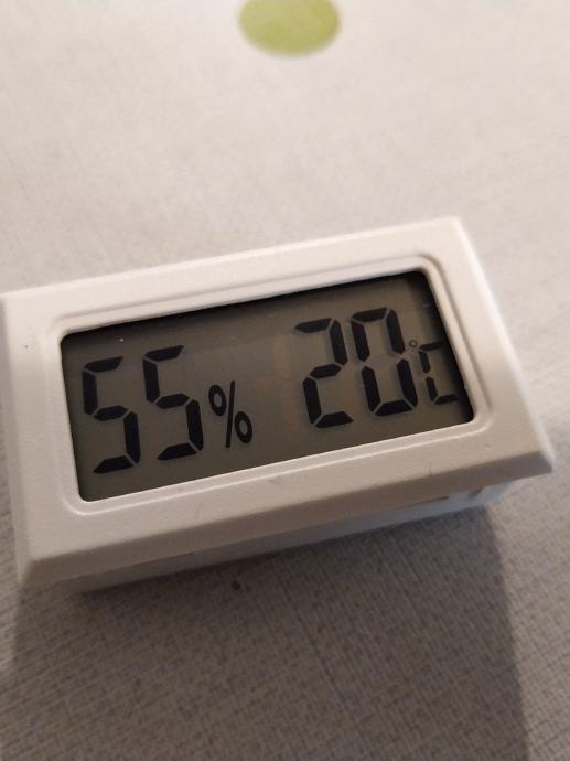 Mjerač vlage i temperature za zatvorene prostore. Novi i nekorišteni. U kompletu sa novim baterijom. Malih dimenzija a može se ubacit u neki otvor jer ima kopče sastrane.