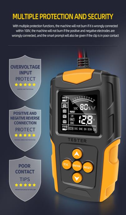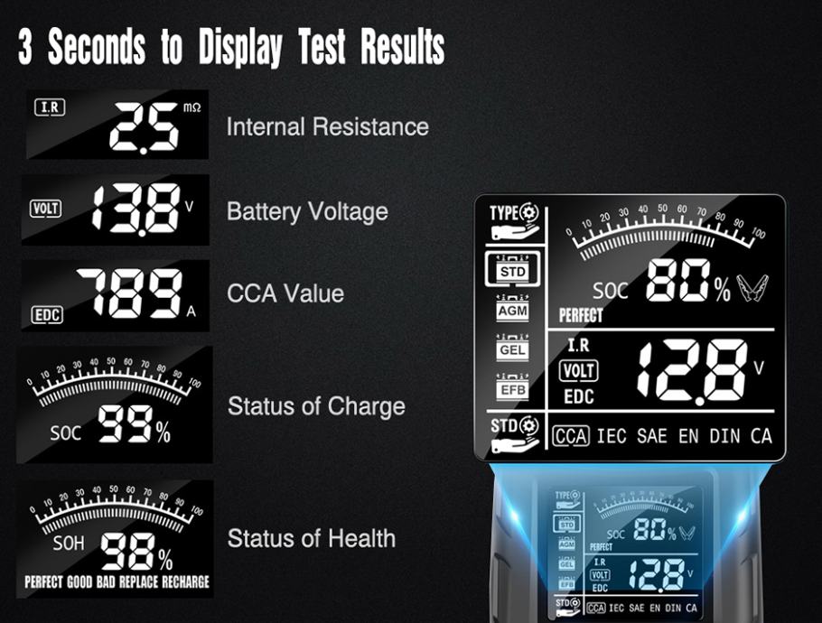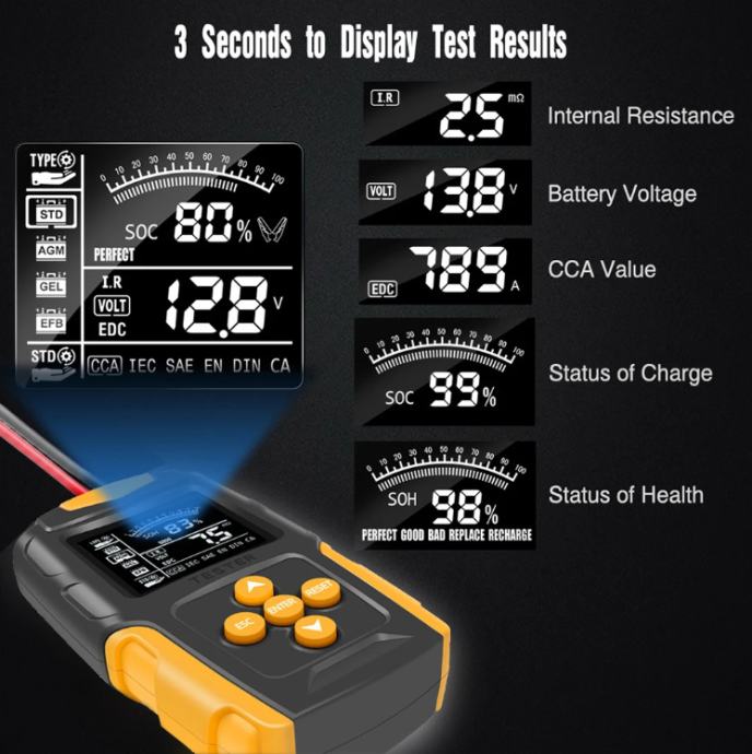 Mjeri sve potrebne parametre akumulatora, jednostavna upotreba i brzo mjerenje!