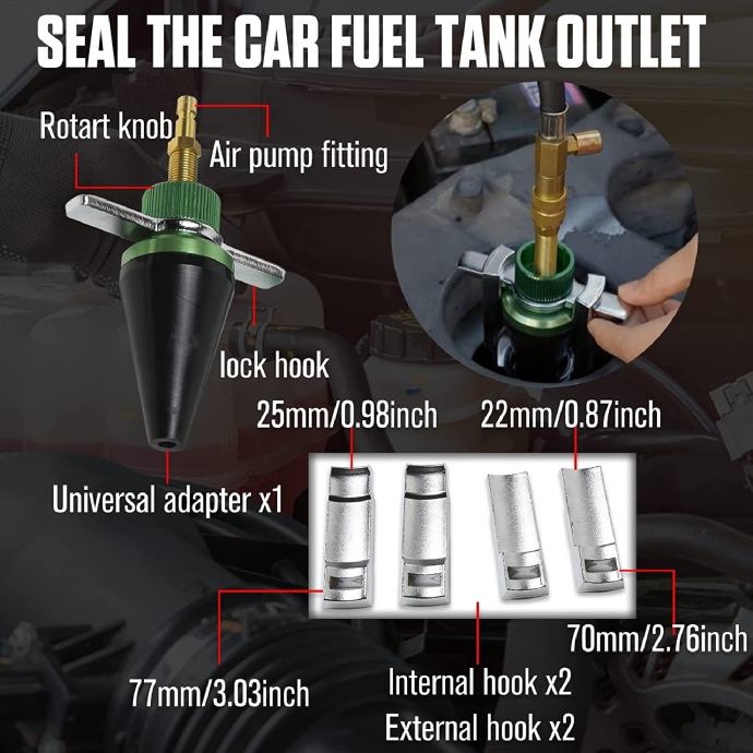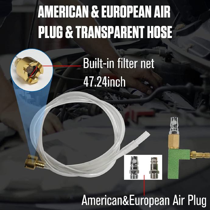 Adapter i američki i europski zračni utikač: Komplet alata za vakuumsko punjenje rashladne tekućine opremljen je univerzalnim gumenim adapterom, koji u potpunosti može zamijeniti tradicionalnih 28 komada, kompatibilnim s gotovo svim vozilima na tržištu. Zračni čepovi američkog i europskog stila zadovoljavaju vaše potrebe. Vanjske/unutarnje kuke se mogu pričvrstiti s obje strane adaptera, a spojnica pneumatske pumpe pričvršćena je na vrh poklopca adaptera za pritisak pumpe.