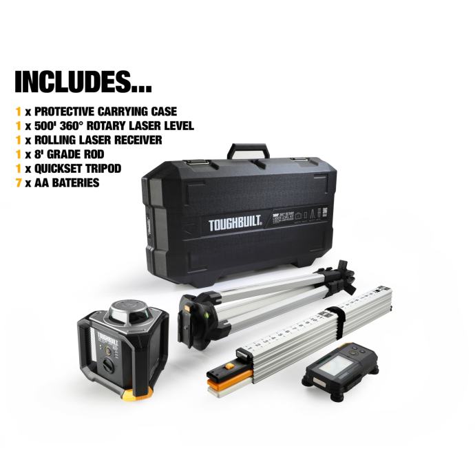 Rotacijski laser ToughBuilt® dometa 150 metara dizajniran je da ponudi iznimnu preciznost i performanse sa svime što je potrebno profesionalcima za niveliranje na jakom dnevnom svjetlu i ekstremnim daljinama, kada rade vanjsko niveliranje, mjerenje i procjenu terena.