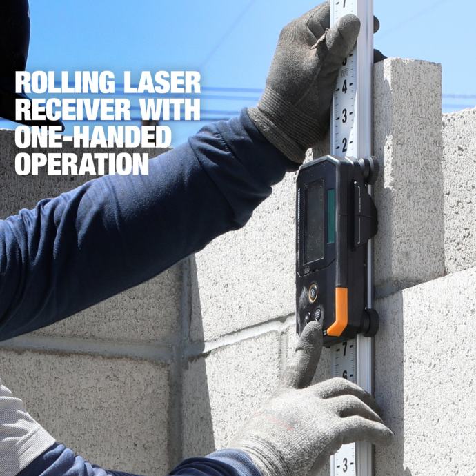 Rotirajući laserski prijemnik nudi izravno pričvršćivanje bez nosača na šipku za nagib i brzo se prilagođava za brza i točna očitanja.