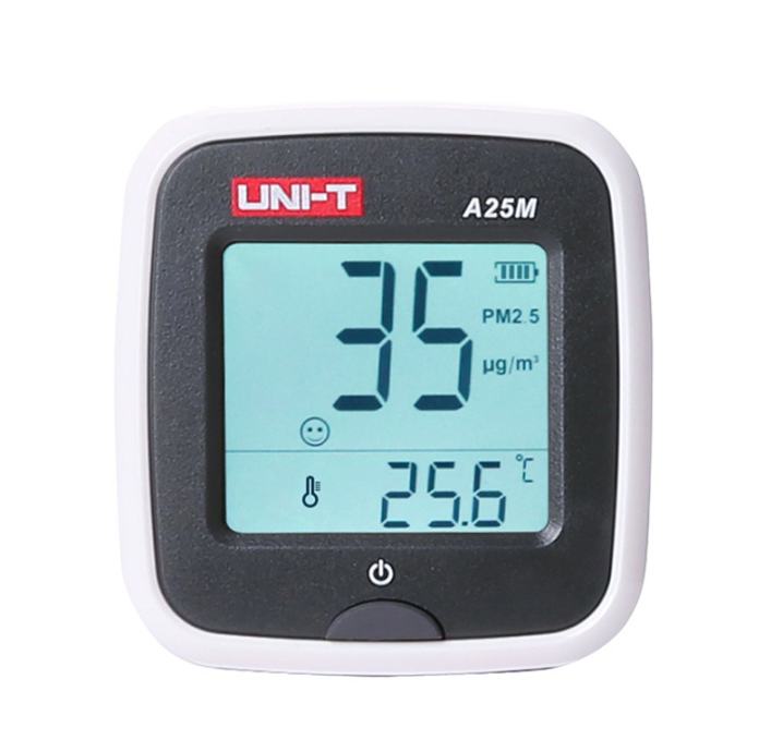 A25M (ručni) je mjerač kvalitete zraka koji se koristi za mjerenje koncentracije PM2,5. Koncentracije PM2,5 prikazuju različite emocionalne simbole kako bi pomogli korisnicima da predstave svoje okolišne uvjete.