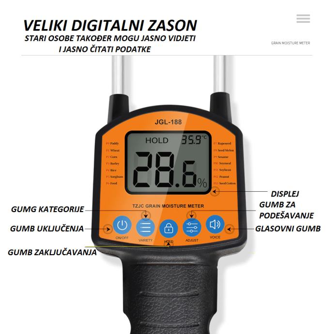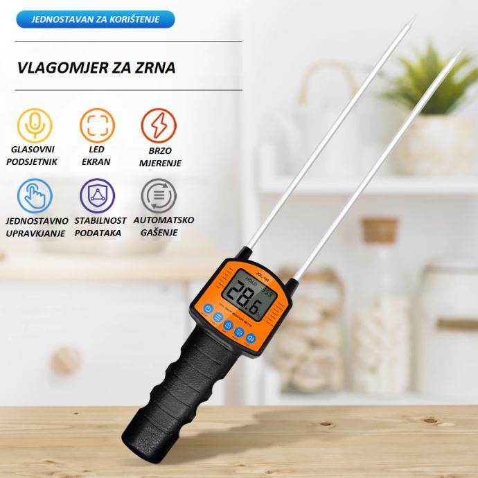 VLAGOMJER MJERAČ VLAGE SA SONDOM I TERMOMETROM ZA ŽITARICE -5-49,9%