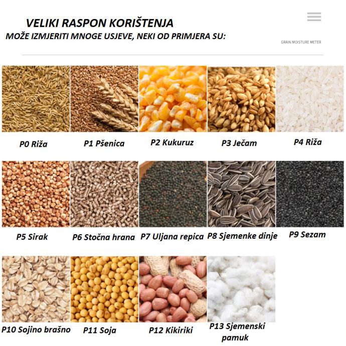 10. Mjerenje 14 vrsta: riža, pšenica, kukuruz, ječam, riža, sirak, stočna hrana, repica, sjemenka dinje, sezam, sojino brašno, soja, kikiriki, sjemenski pamuk.