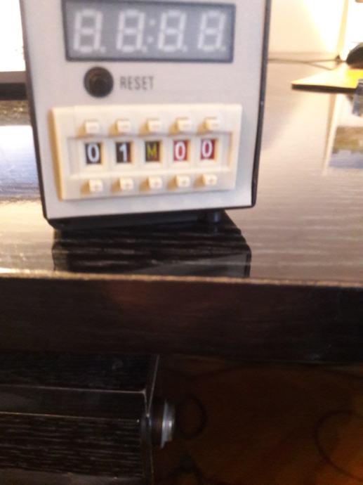 način rada: pomoću kodir šaltera namjesti se vrijeme i sa tipkom reset počinje odbrojavanje,na displeju se pokazuje vrijeme .