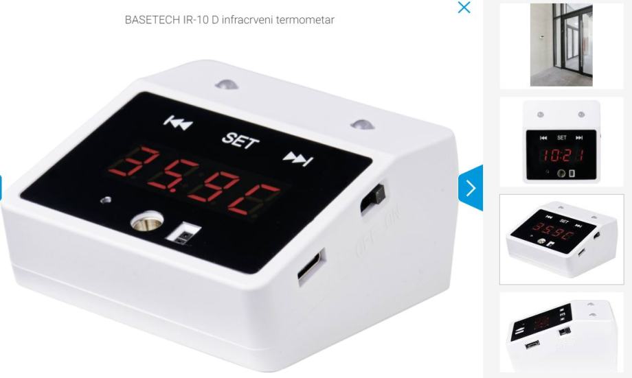Zidni Basetech IR-10 D 0-50°C Infrared-Termometar-toplomjer 0.5s, Covid, mjeri na udaljenosti 8cm, micro-USB kabel, ili 3xAAA alkalna, točnost ±0.2°C, 68x73x36mm 73g