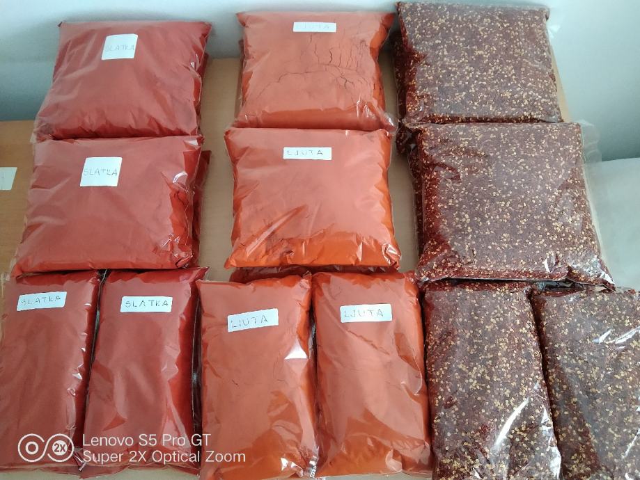 Poštovani prijatelji i kupci!I ove godine Vam možemo ponuditi naše tri paprike rod 2022.Slatka i extra ljuta začinska mljevena paprika te tucana ljuta paprika.Paprika je vrhunske kvalitete,boje i okusa te je spremna da obogati Vaša kuhana jela i suhomesnate proizvode.Pakiranja su po 500g i 1kg.Papriku je moguće preuzeti u Bjelovaru, mogućnost slanja poštom, minimalna narudžba ukupno 1kg.Informacije na Messenger,Viber, WhatsApp i SMS.Kontakt broj 098/556-808.Cijena je za 1kg-18eur.
