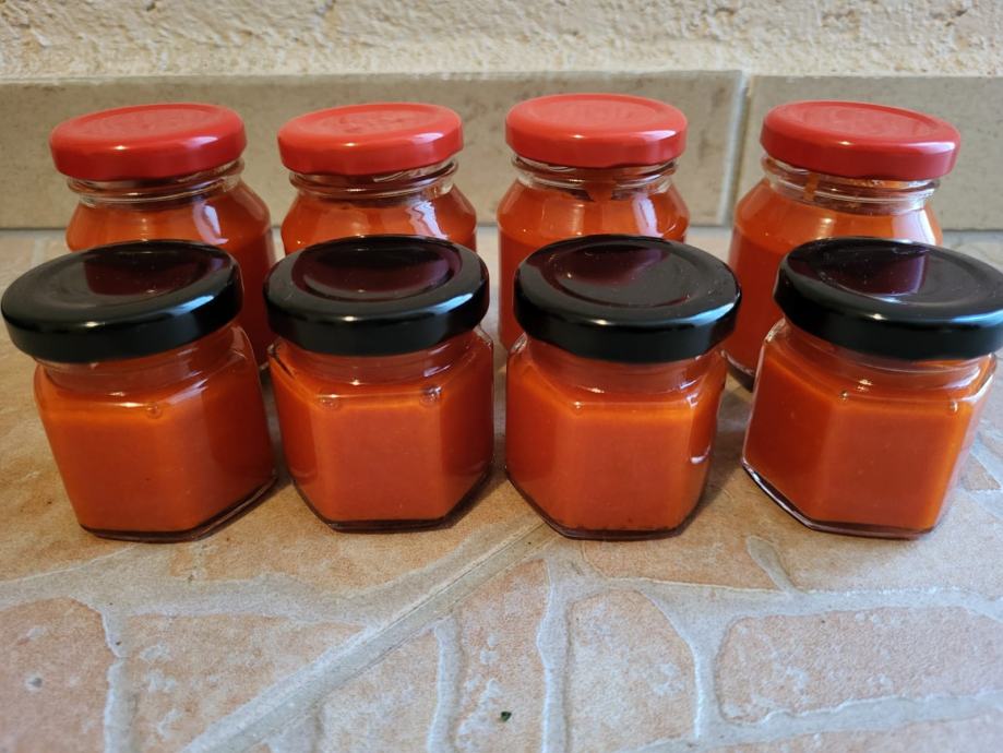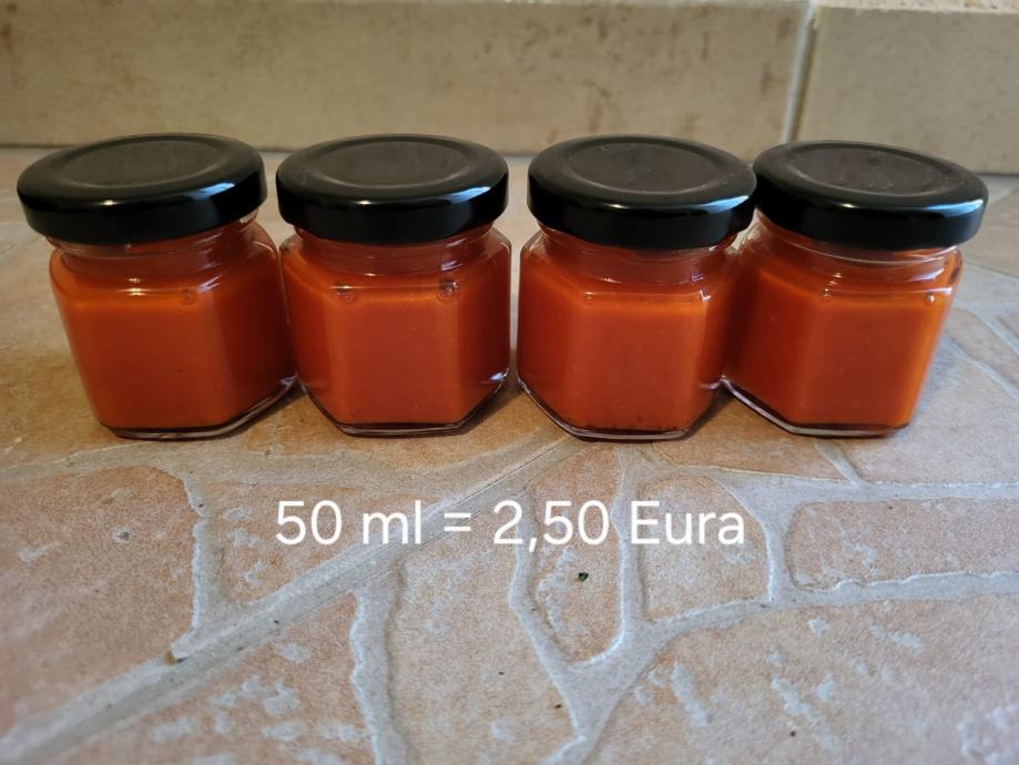 Prodajem domaći umak (pastu) od ljutih papričica: Chocolate habanero - smeđi umak, Habanero red, 7 pot brain strain, Carolina reaper. Papričice su uzgojene na prirodan način, umak je odličan za dodavanje u čobanac, gulaš, na pizzu i sl. Bez konzervansa i aditiva. Pasteriziran. Vlastiti višak.