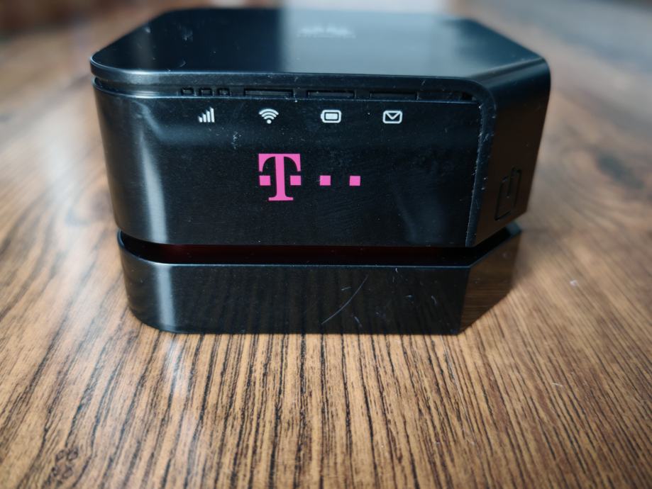 The Huawei E5170 Cube consists of two parts, lower part of the docking connector for wired LAN, upper part of the battery serves as a WiFi hotspot for up to 32 devices.